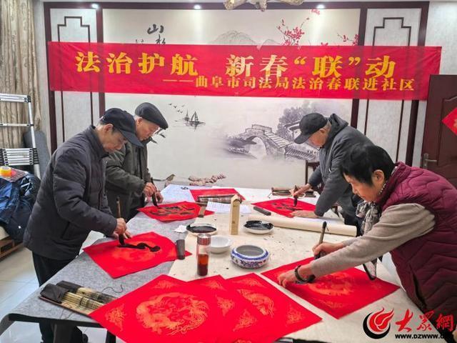 大众网记者 朱铜辉 通讯员 王星 济宁报道1月15日,曲阜市司法局在小雪街道明德社区开展“法治护航 新春‘联’动”普法宣传活动,给群众送春联、送福气、送平安。